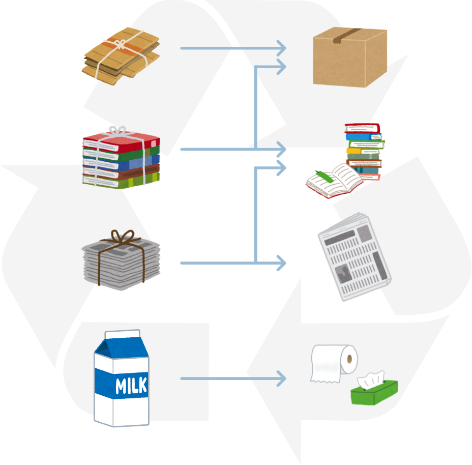 | 紙パック | トイレットペーパー、 ティッシュペーパーなど |